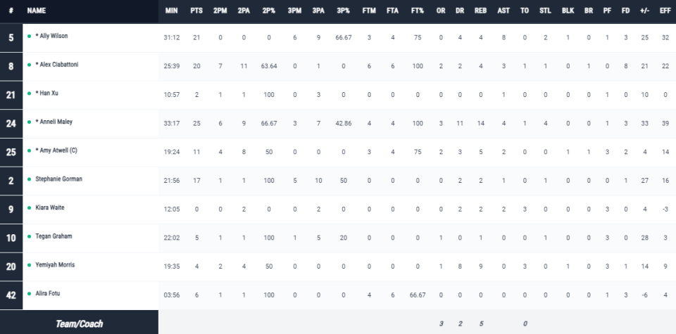 珀斯山猫女篮首节22-19领先3分,第二节打出34-13单节净胜21分攻势,第三节打出33-16净胜17分攻势,前三节比赛已经取得41分巨大领先优势,末节22-31被追回9分,最终珀斯山猫女篮111-79大胜南区飞人女篮。